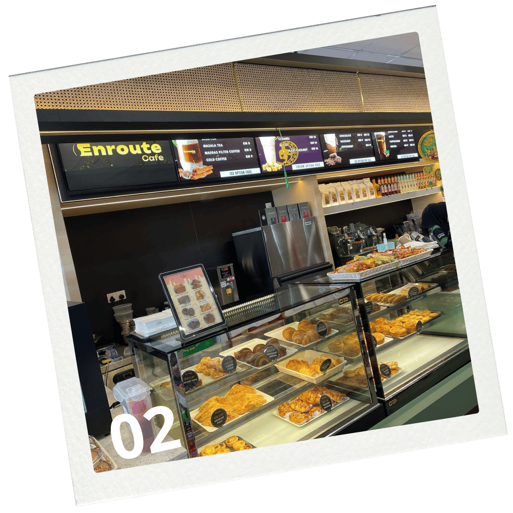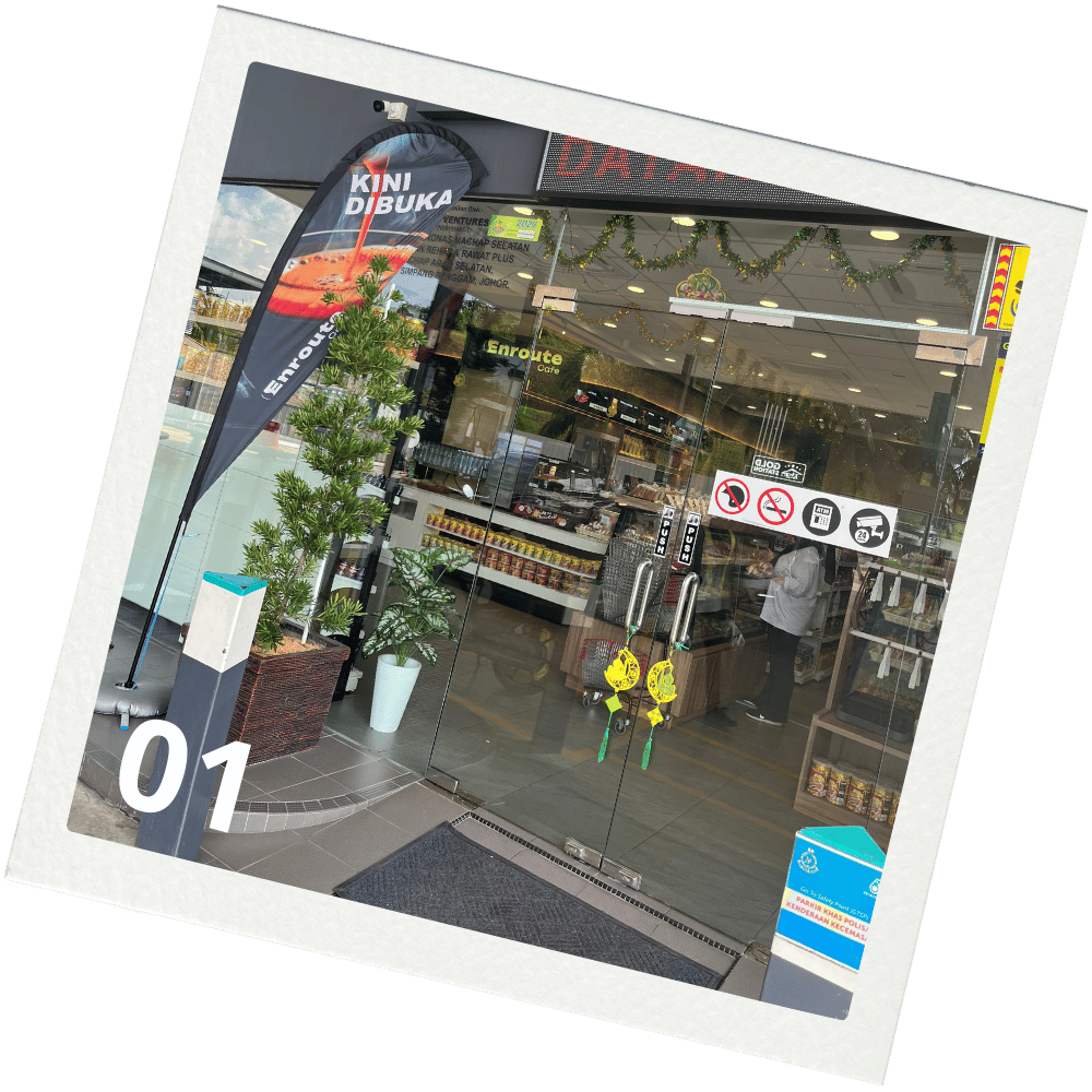 Located at Stesen Minyak Petronas, Kawasan Rehat & Rawat Plus Machap Arah Selatan, Enroute Café is designed for travelers and locals alike. Our modern minimalist café offers a quick, affordable, and delightful coffee and pastry experience. Whether you're fueling up your car or just craving a fresh brew, we’ve got you covered.